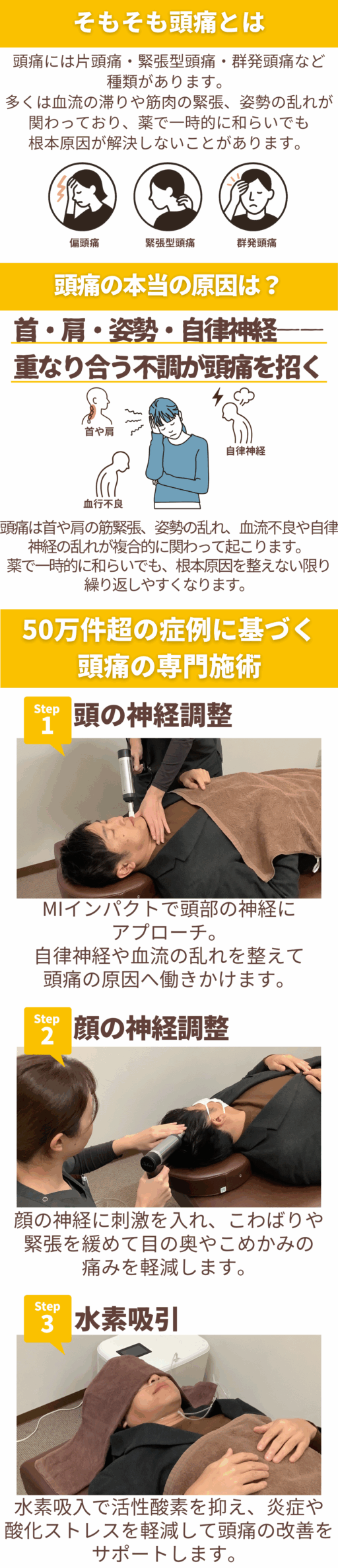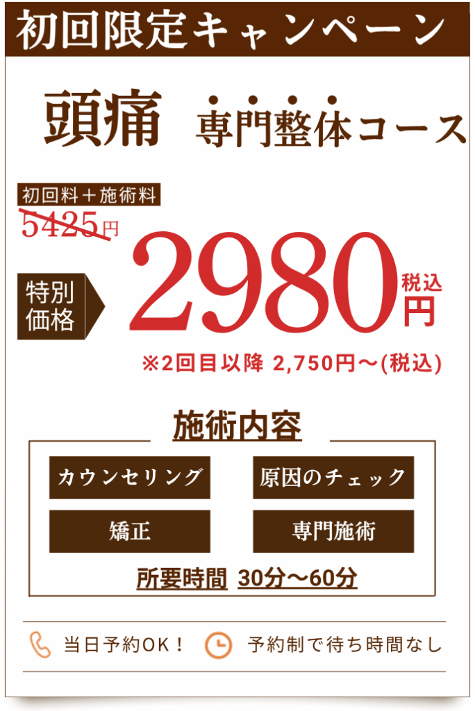 当院の頭痛に特化した専門技術と最新設備を導入し、負担が少なく継続しやすい施術と料金設定で、お客様のお悩みの根本改善をサポートいたします!!