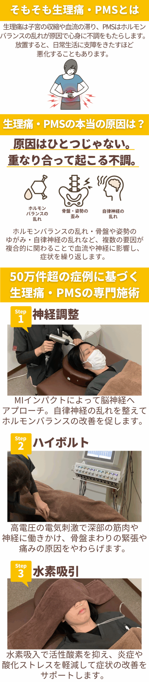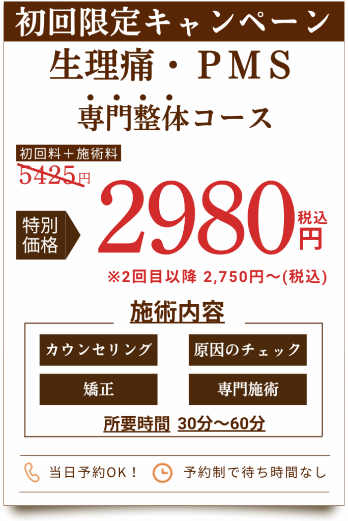 当院では、生理痛やPMSに特化した専門技術と最新設備を導入し、負担が少なく続けやすい施術と料金設定で、お客様のお悩みの根本改善をサポートいたします!!