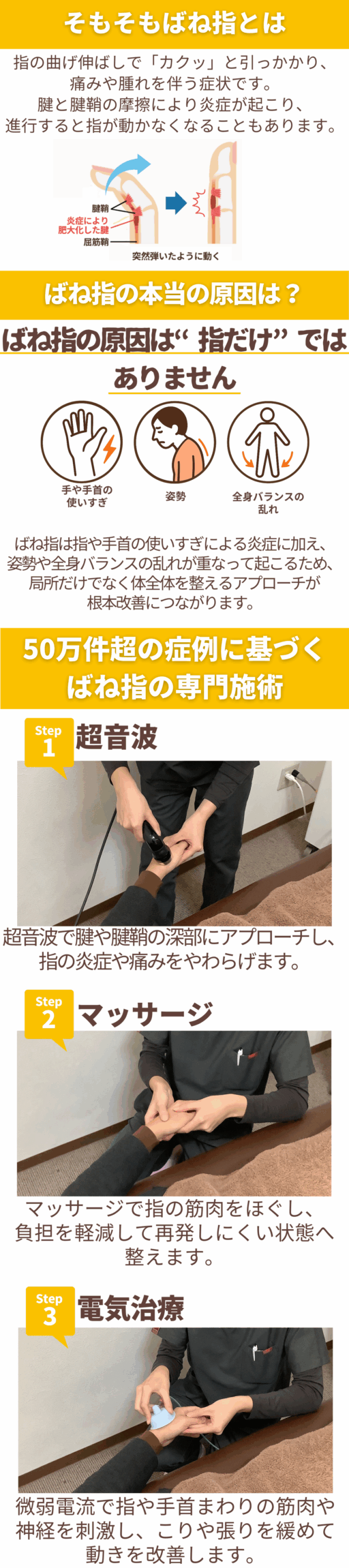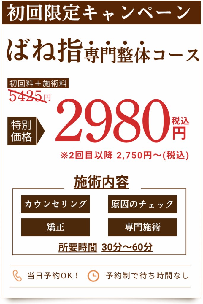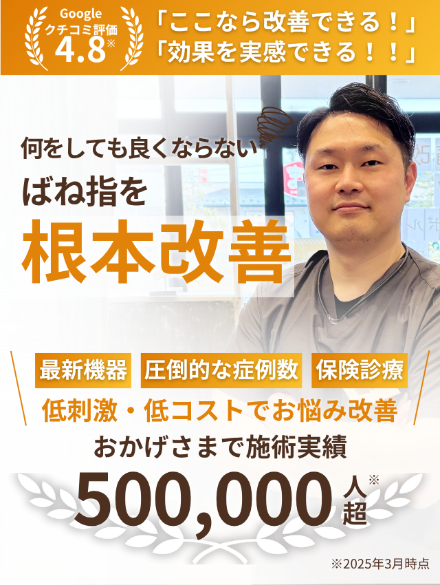 当院の​ばね指に​特化した​専門技術最新設備を導入し、負担が少なく継続しやすい施術と料金設定で、お客様の​お悩みの​根本改善を​サポートいたします!!​