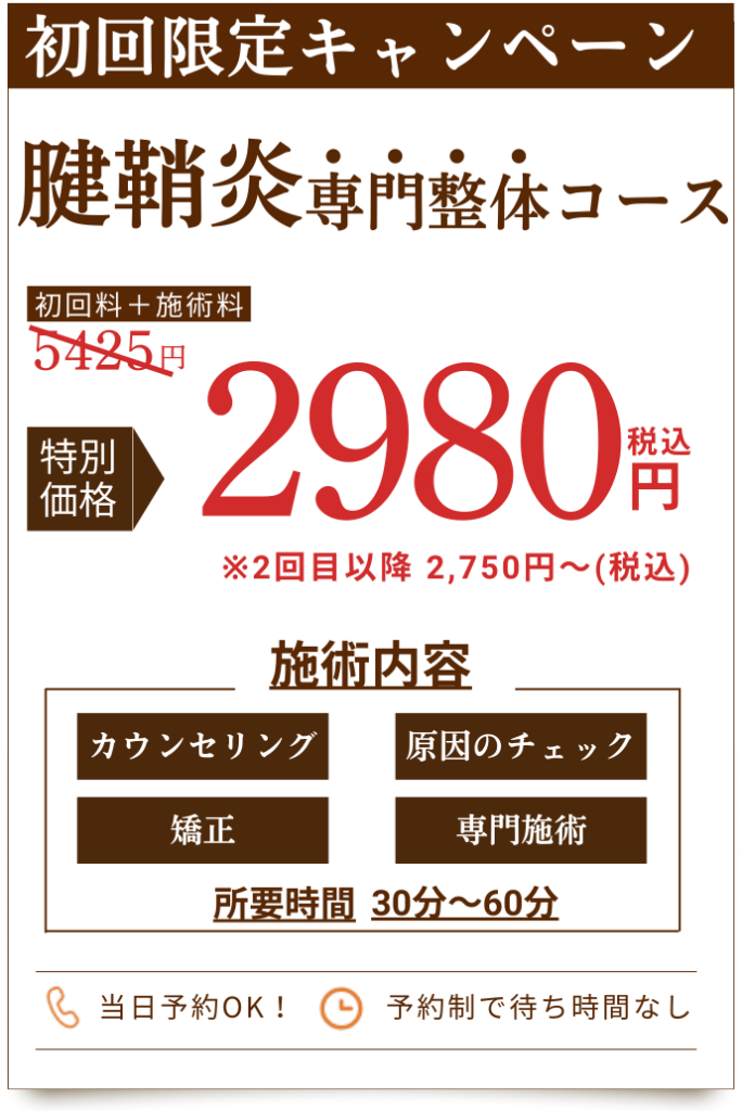 当院の腱鞘炎の専門技術最新設備負担が少なく継続しやすい施術と料金設定で、お客様のお悩みを解消します!!